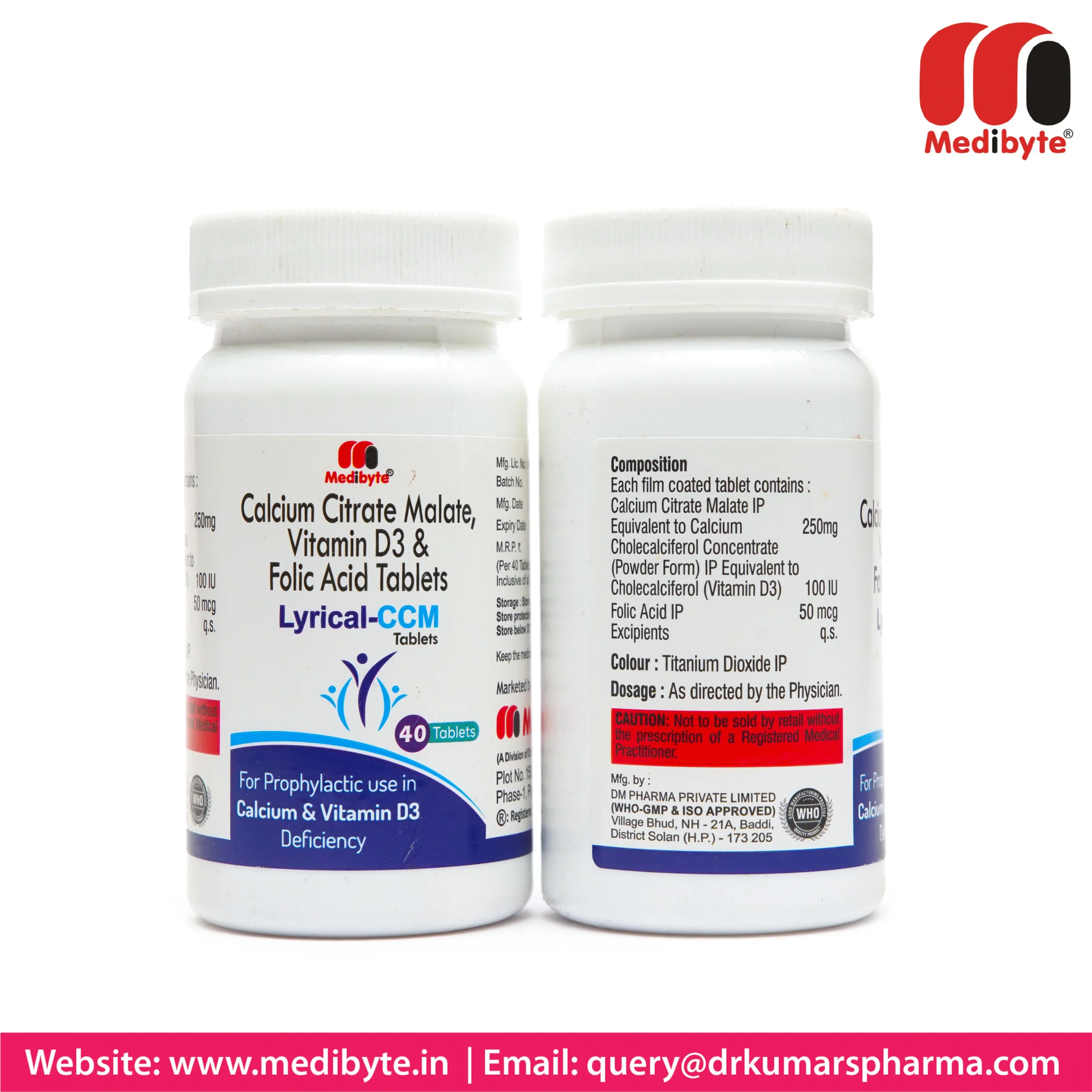 Calcium Citrate Malate 250 mg + Vitamin D3 100 IU + Folic Acid 50 mcg Tablet